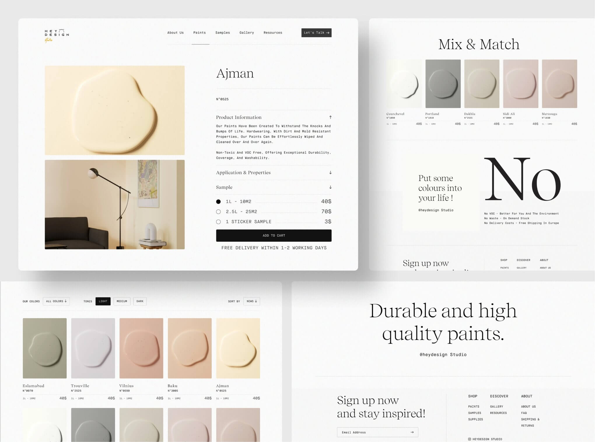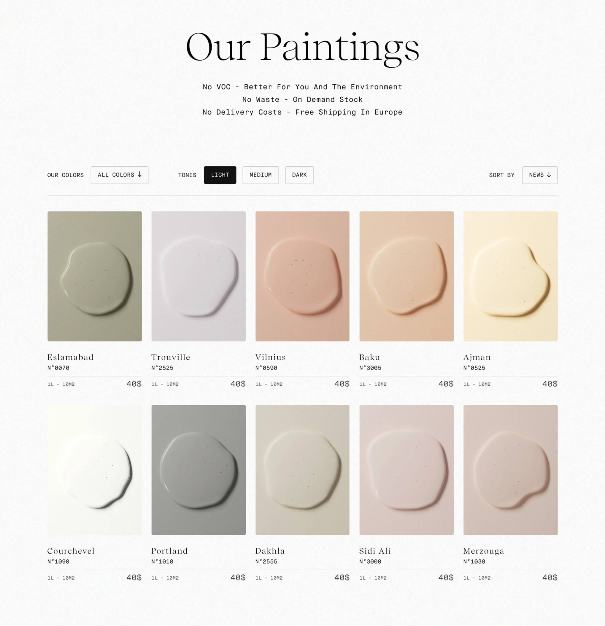 Our challenge was to use a minimalist design, using black and white to increase the contract of paint colors while maintaining the sophistication and elegance of the brand.